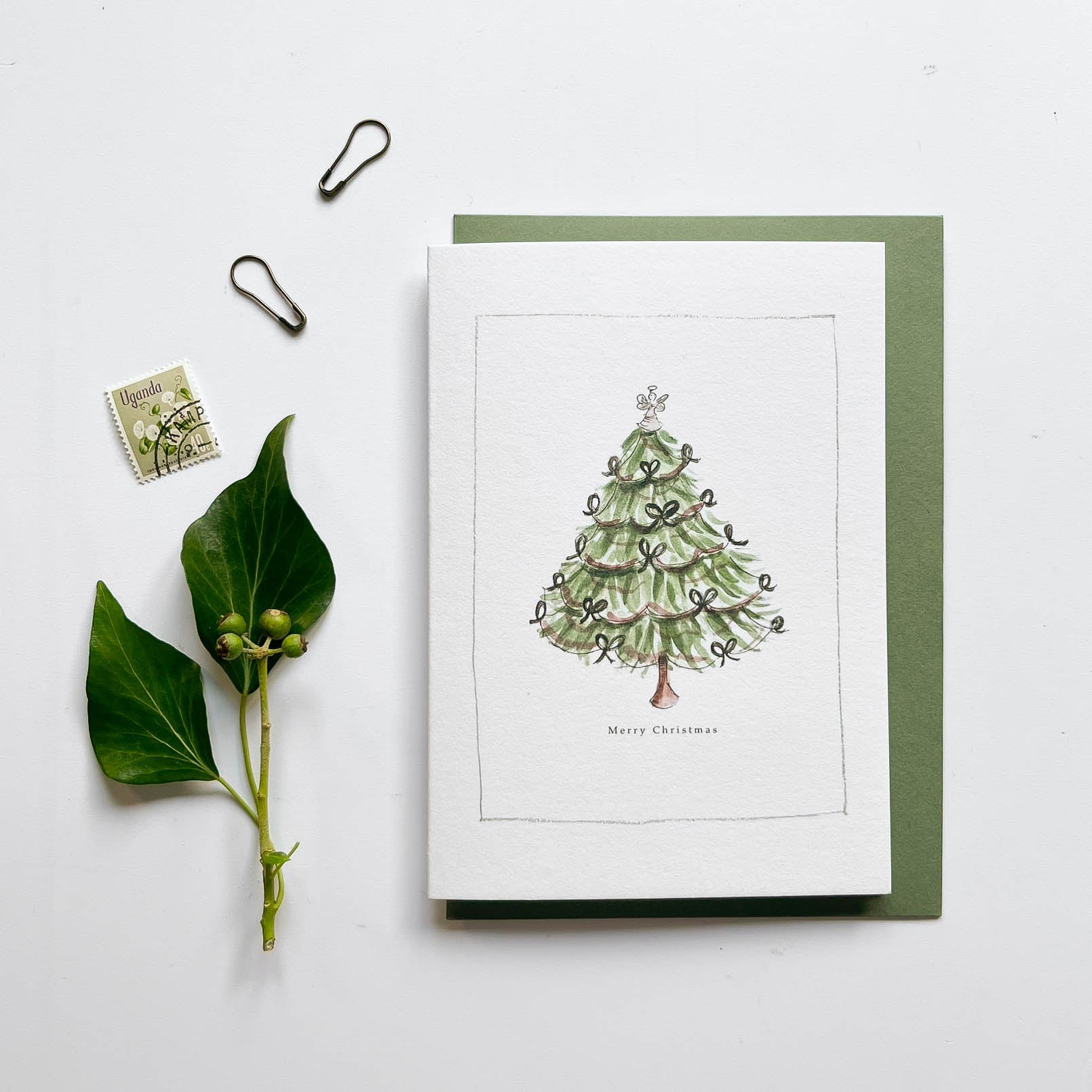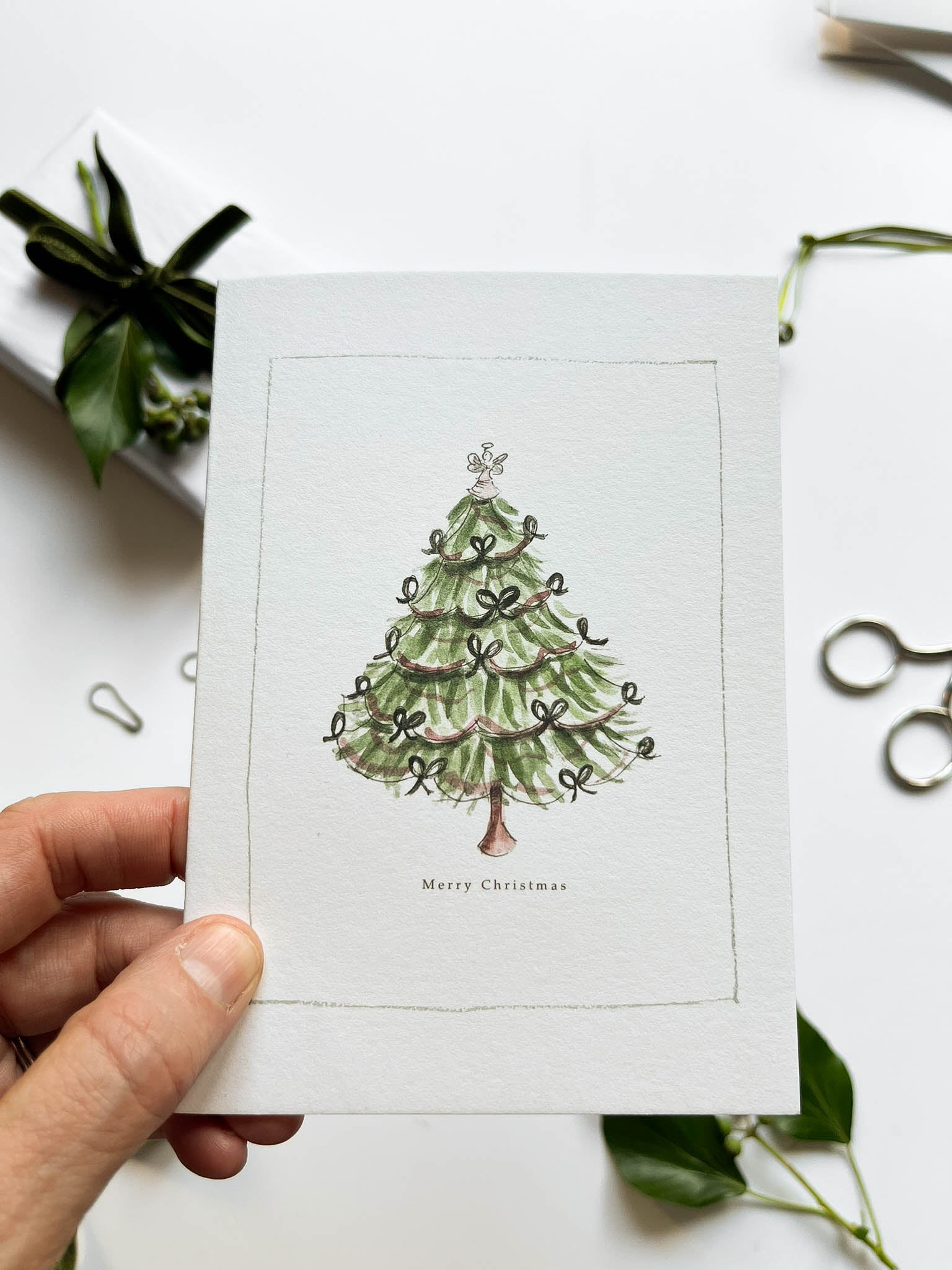With hand illustrated Christmas tree & angel