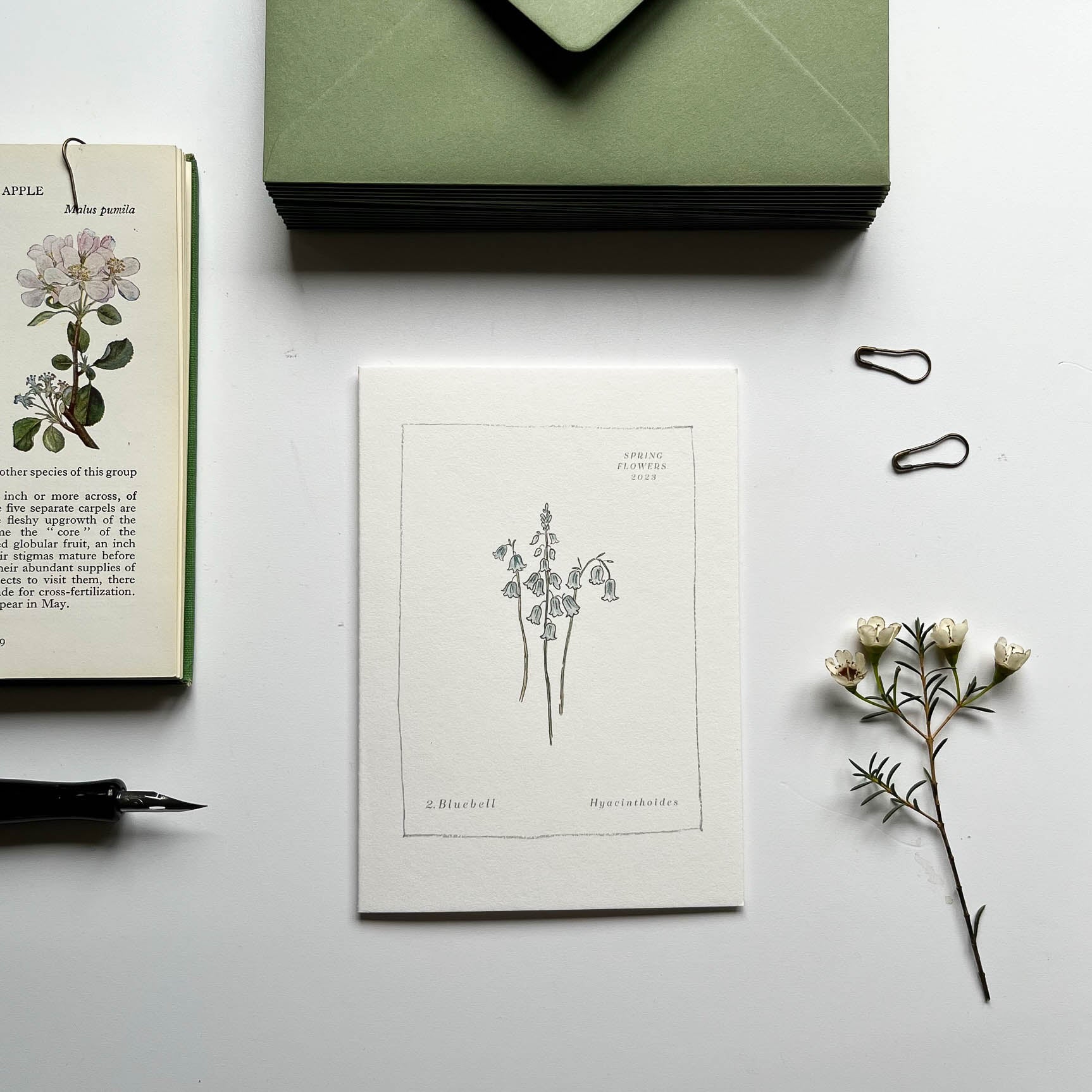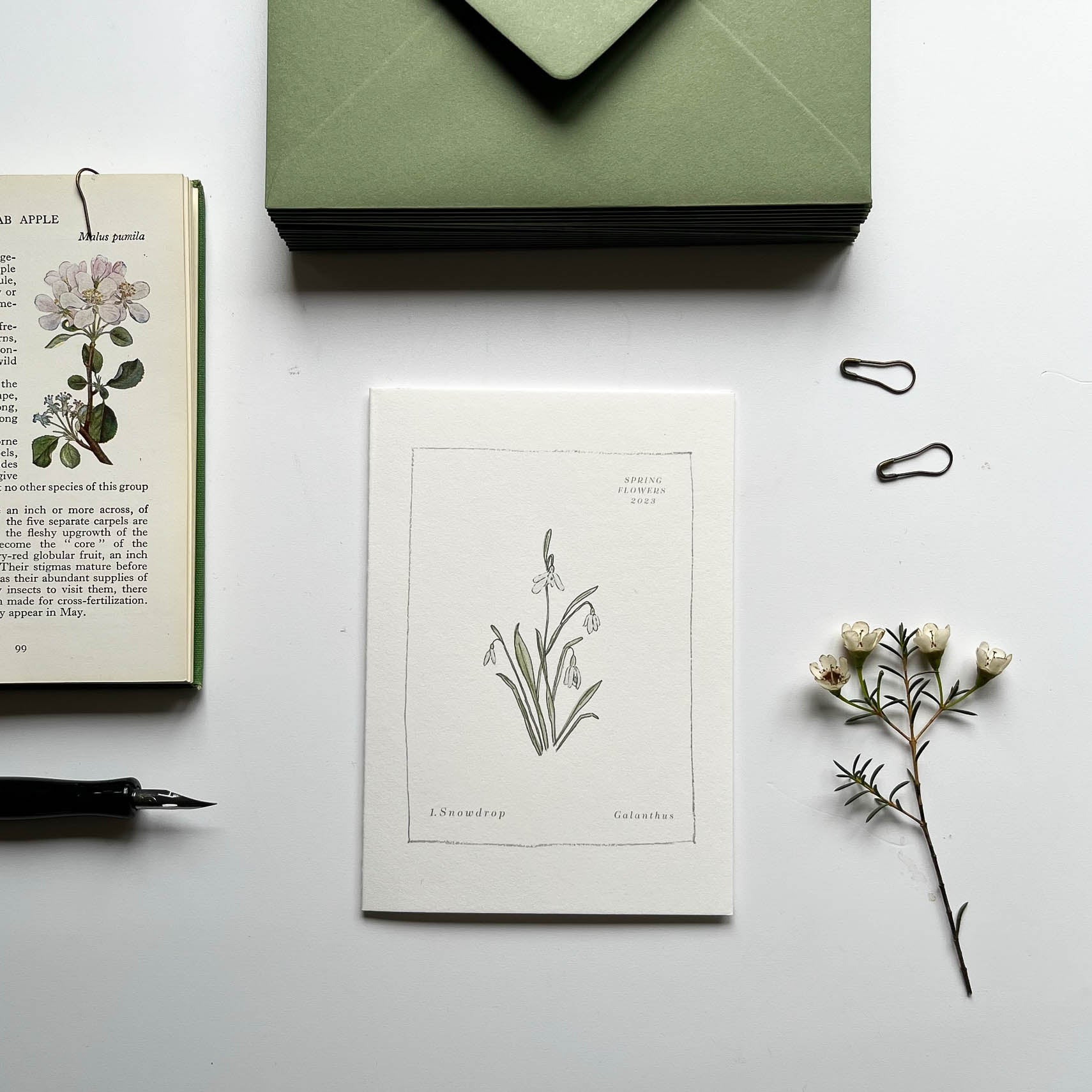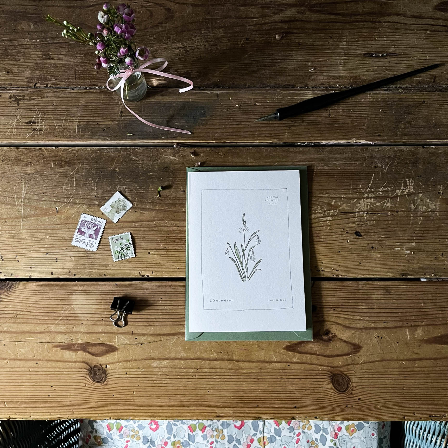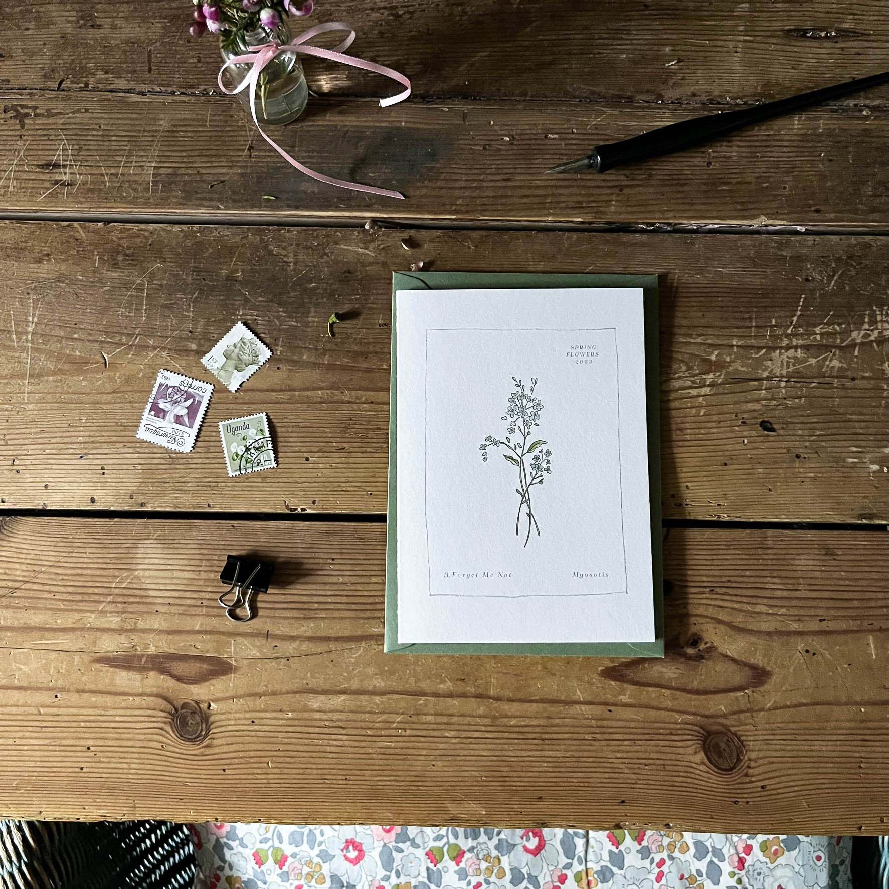 Printed on 300gsm 100% cotton card with contrasting green 135gsm envelopes